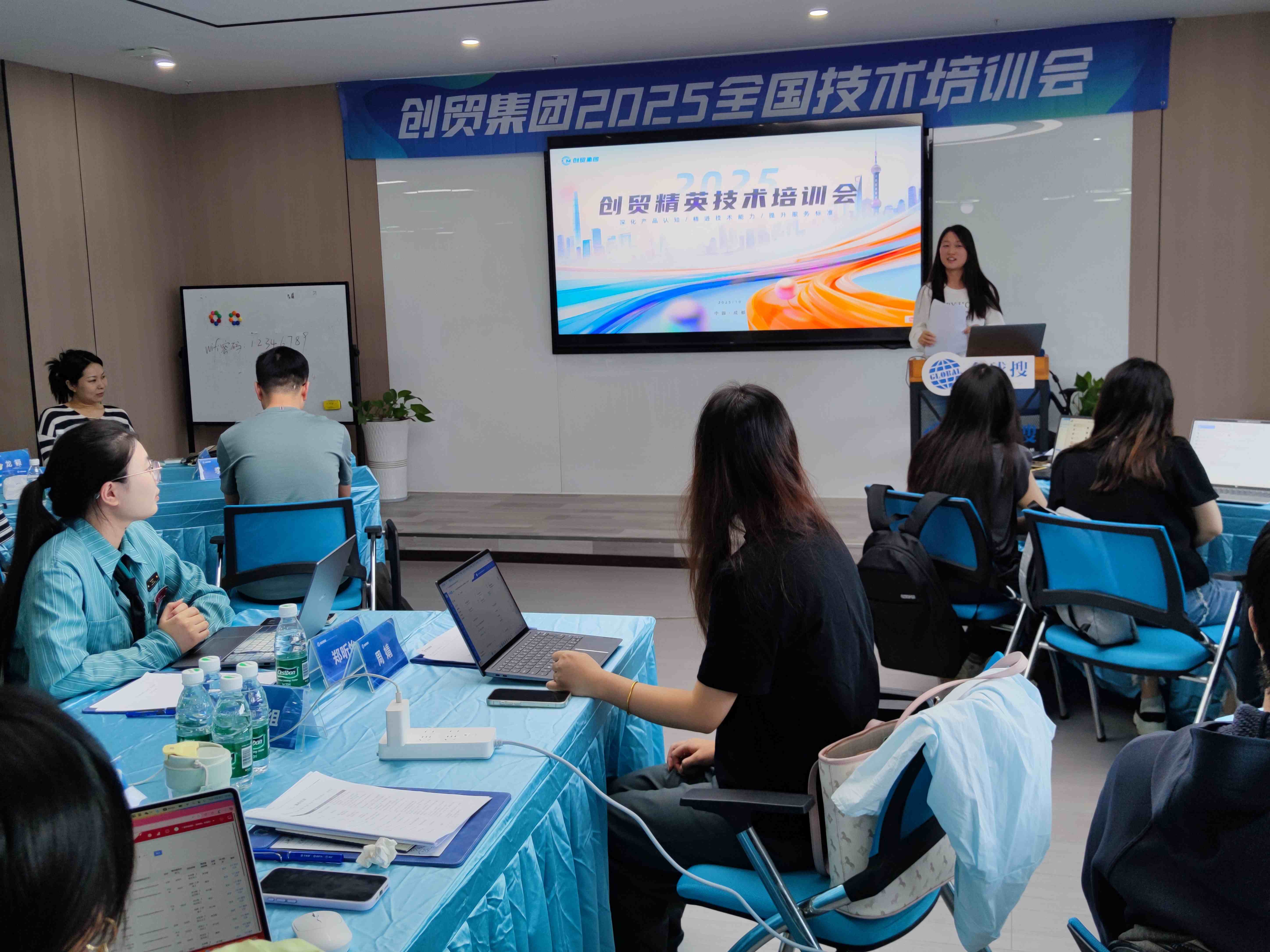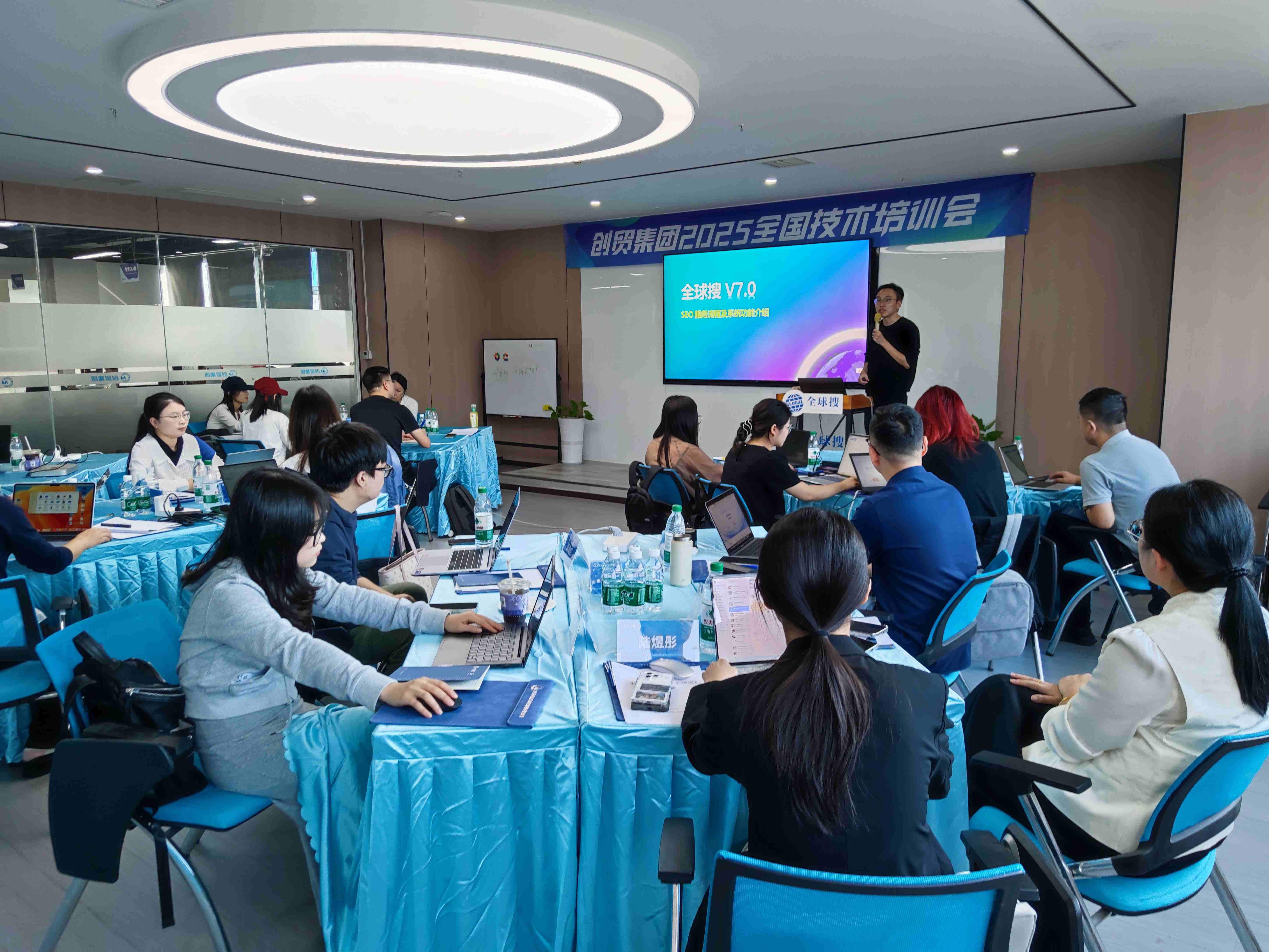 培训采用 “前沿知识讲解+实战演练+核心骨干带教” 的多维度模式,确保每一位参训人员都能学有所获、学以致用。在课程设置上,集团紧扣外贸营销的实际需求,围绕 “全球搜V7.0” 这一核心产品展开深度教学。从深入细致的全球搜V7.0服务流程讲解,帮助参训人员理清服务脉络;到全面系统的后台操作教学,让大家熟悉每一个功能模块的使用技巧;再到创新实用的AI排版功能解读,解锁智能营销的新方式,每一堂课程都干货满满。
